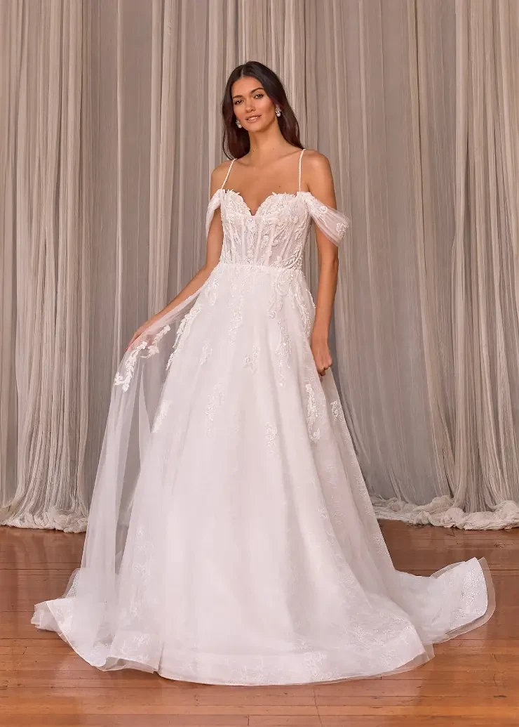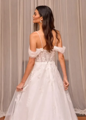 Silhouette:A-Line, Demi Sheer Bodice, Natural Waist